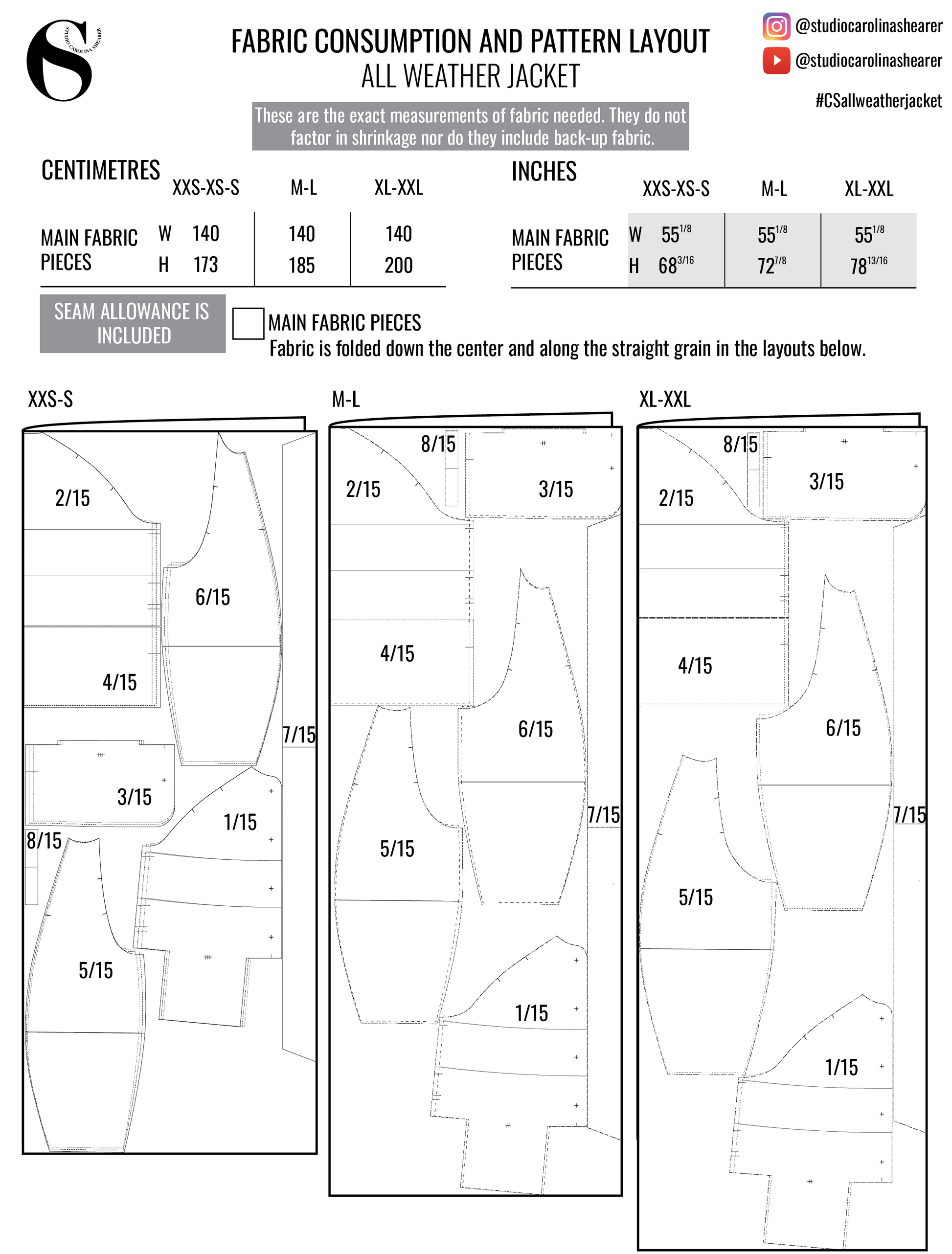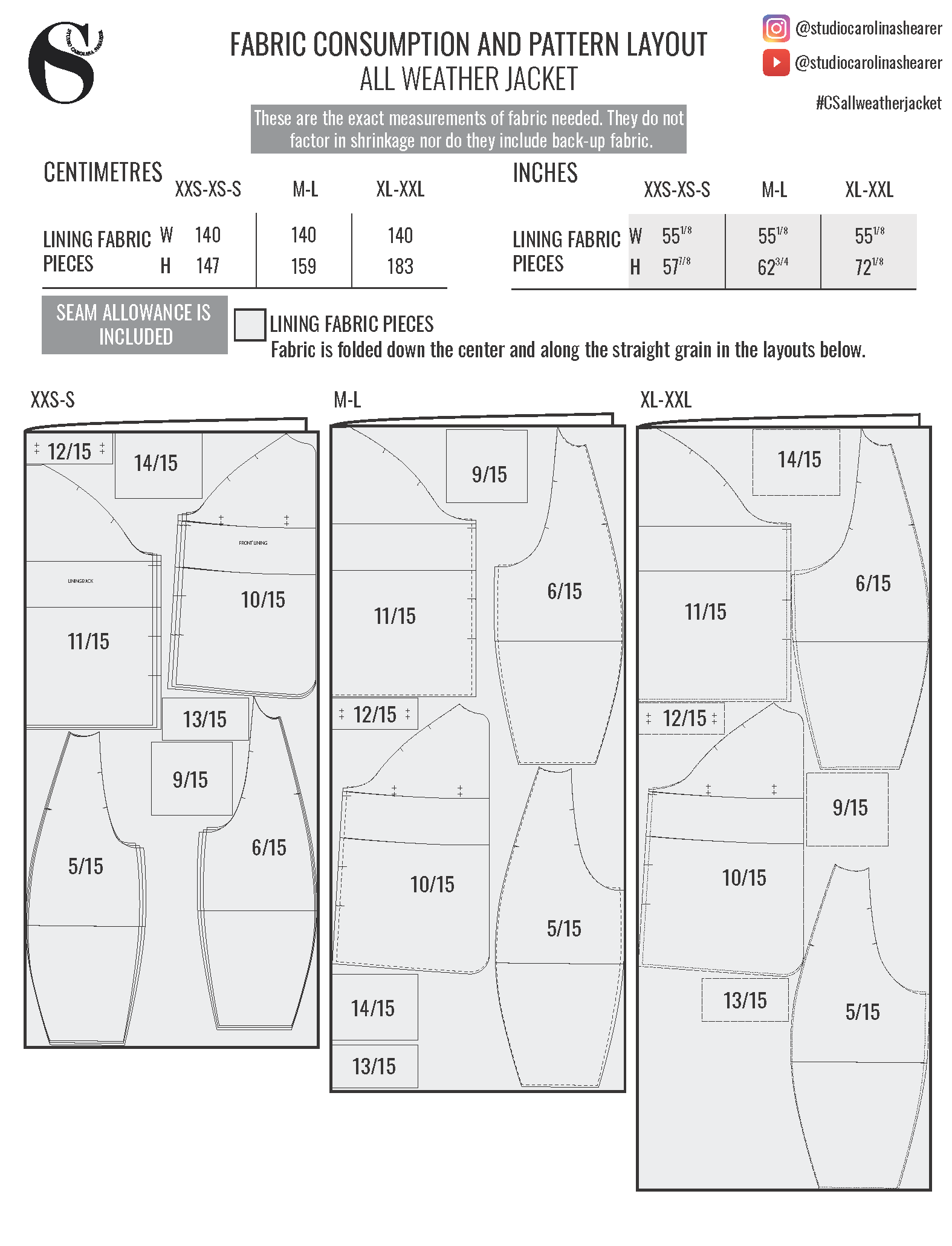 Happy sewing! Please tag me @studiocarolinashearer and use #csallweatherjacket so I can see all your lovely creations on Instagram! :)