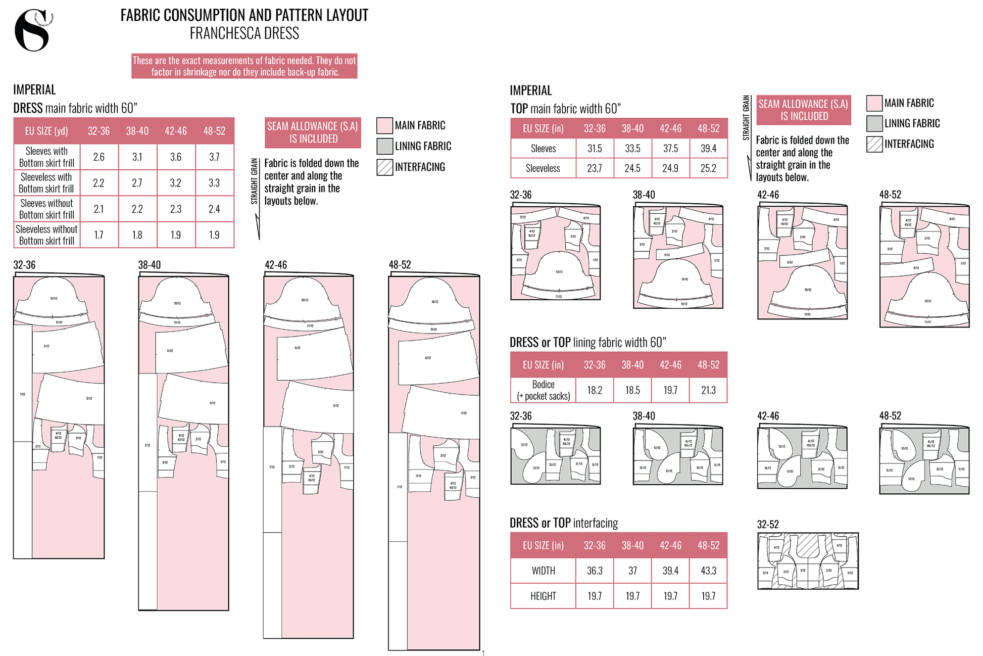 - Fabric and Interfacing Consumption: See listing images.